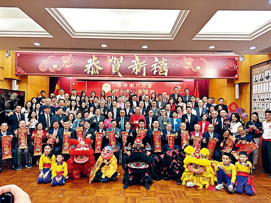香港潮州商會甲辰年新春團拜於2月20日在香港潮州商會會所禮堂舉行,獲律政司副司長張國鈞, SBS JP,入境事務處處長郭俊峯, IDSM、中聯辦港島工作部副部長王卉、中西區民政事務專員梁子琪, JP等蒞臨主禮,中聯辦港島工作部處長蔡曉珊,九龍工作部處長劉湛雄。立法會議員陳凱欣、周小松也現身出席。一眾主禮嘉賓為醒獅點睛掛紅,並觀賞醒獅採青的精彩表演。