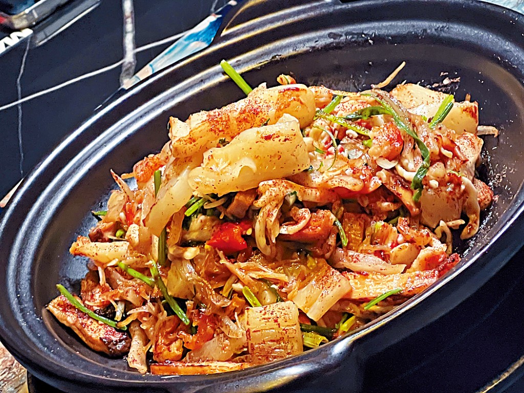 潮式炒花膠條(見圖),手工菜,花膠新食法,用上湯餵花膠至入味,切成粗條,加入瑤柱、蝦乾、大梳鮮蟹肉、XO醬炒香,放瓦罉上枱,惹味,多吃也不覺膩,最啱春夏。
