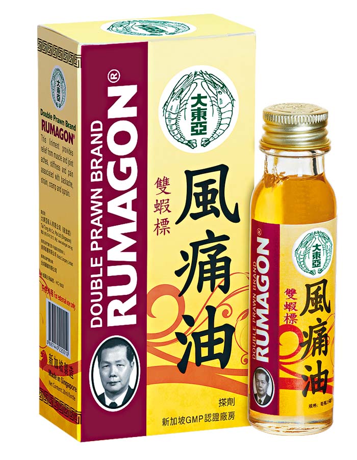 雙蝦標風痛油於新加坡製造,滲透力強,塗抹後可直達疼痛部位,能有效祛風活絡,紓緩各種關節痛同腰酸背痛。藥油嚴格按照GMP標準製造,品質保證,安全無毒。想要關愛年長家人,可從一枝新加坡製造的雙蝦標風痛油開始。