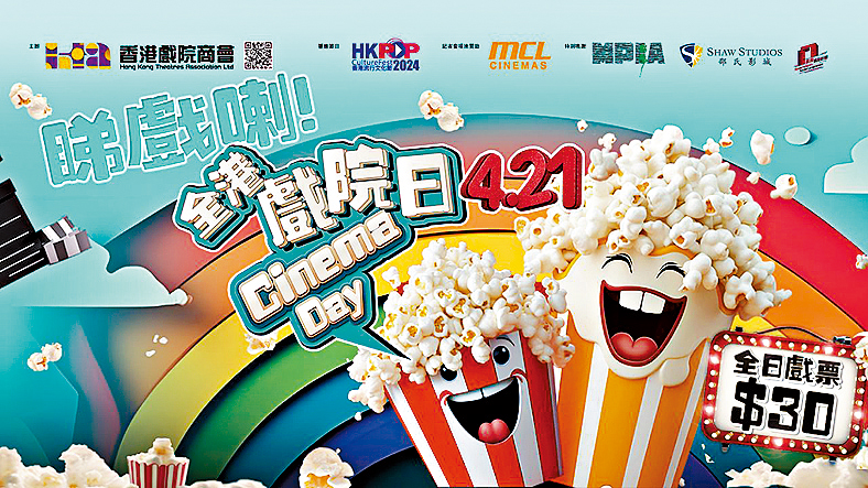 咁多位影迷有福喇,香港戲院商會宣布4月21號再度舉行「全港戲院日」,當日全港63間戲院票價劃一只需30蚊!戲院日戲飛將於17號中午12點後,陸續喺各大戲院票房及網站開售,mark低時間搶飛喇。