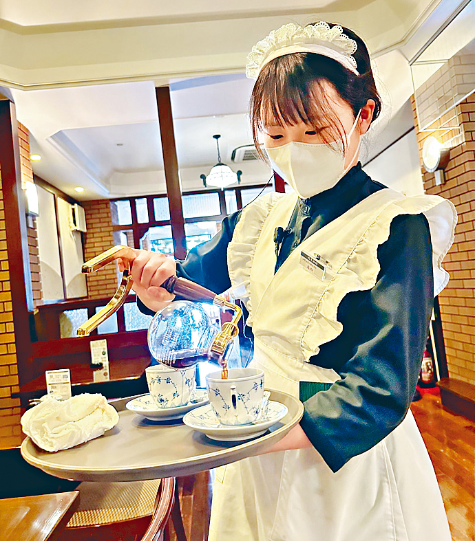 「女僕咖啡店」頗受年輕人歡迎,但卡哇伊的口味,未必適合所有人。想體驗典雅的侍女服務,椿屋是不錯的選擇,女店員的制服以大正時期的女僕服裝為概念設計,充滿懷舊風情。在咖啡上桌時,侍女會親自在桌邊為客人斟滿咖啡,除了制服講究之外,服務更是無微不至。