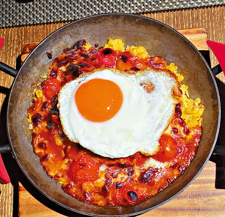 有些店子的豬扒不是被古靈精怪的醃料搞到很腍但帶苦味,就是揼得太過分令肉質散晒。鋒膳的快樂豚經21天乾熟成,吃起來有點嚼勁,最重要是有肉味,配上9:1比例的金鳳米和日本珍珠米,再煎九州太陽蛋、荷蘭串茄、洋蔥、蘑菇,以茄膏、茄汁焗成,整體做得相當好,還跟一小盅滋味的哈密瓜陳皮螺頭豬𦟌湯。
