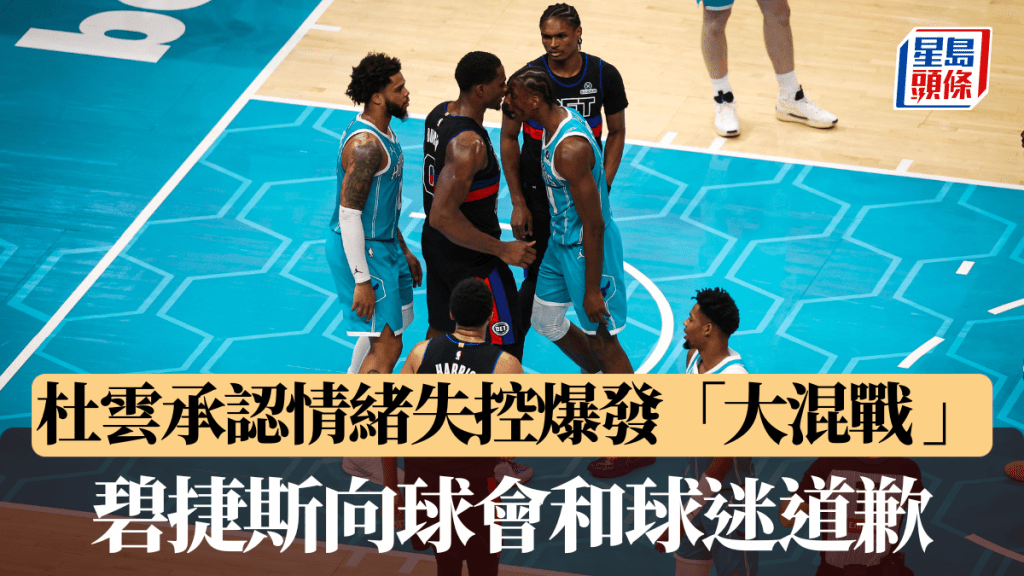 NBA週一晚間一場常規賽演變成暴力衝突,底特律活塞作客夏洛特黃蜂的比賽,在第三節爆發大型群毆,最終導致四名球員被直接驅逐離場,場面極度混亂,甚至一度有警員入場維持秩序。賽後,杜雲承認當時情緒失控,碧捷斯則向球會和黃蜂球迷道歉。