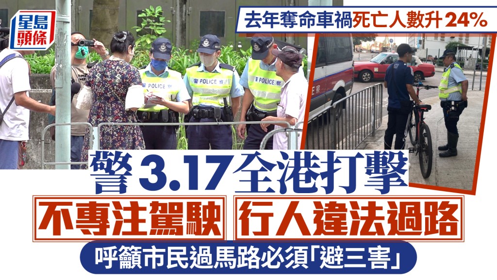 警方明日全港執法行動 重點打擊司機不專注駕駛及行人違例過馬路