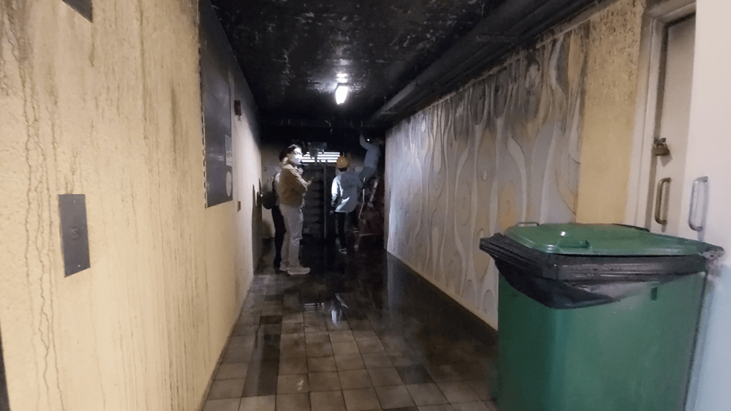 石硤尾邨奪命火|起火樓層天花牆身嚴重熏黑 人員檢查電力裝置