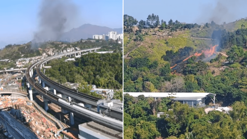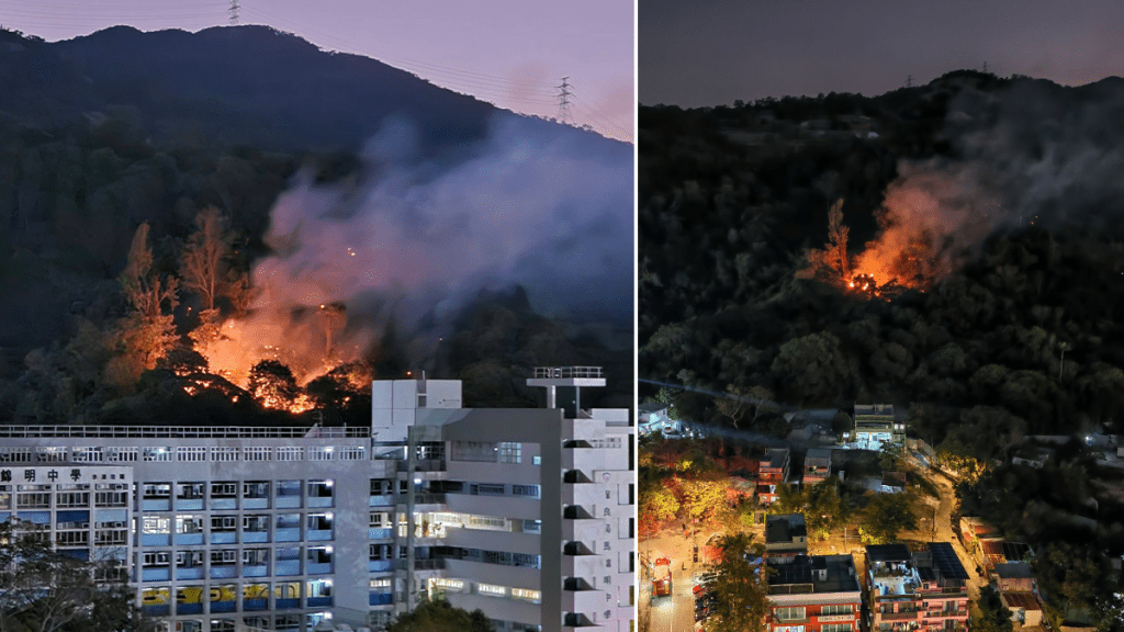 天水圍蝦尾新村對開山頭山火 至少現3條火線最長達50米