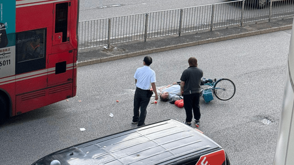 荃灣單車漢捱巴士撞 人仰車翻受傷大字形倒地