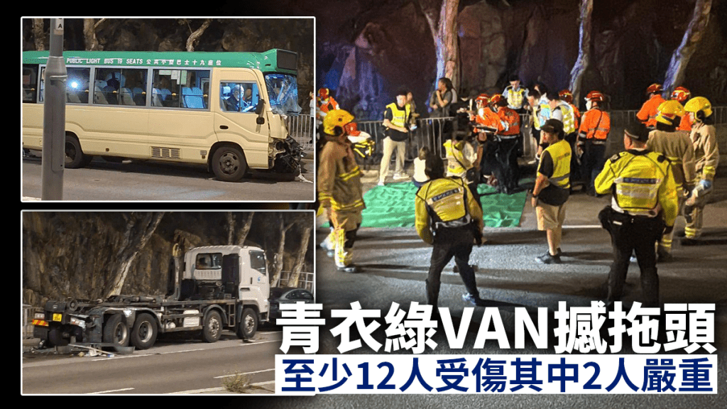 青衣專線小巴猛撼拖頭車尾 至少12人受傷其中2人嚴重