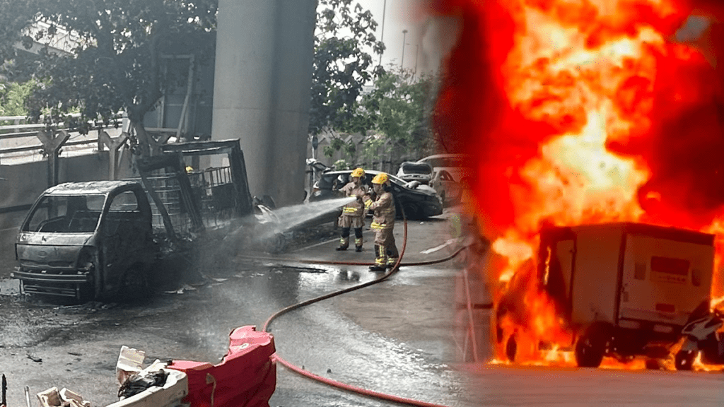 葵涌貨櫃碼頭停車場貨車陷火海 疑為非法加油站 正追緝女車主