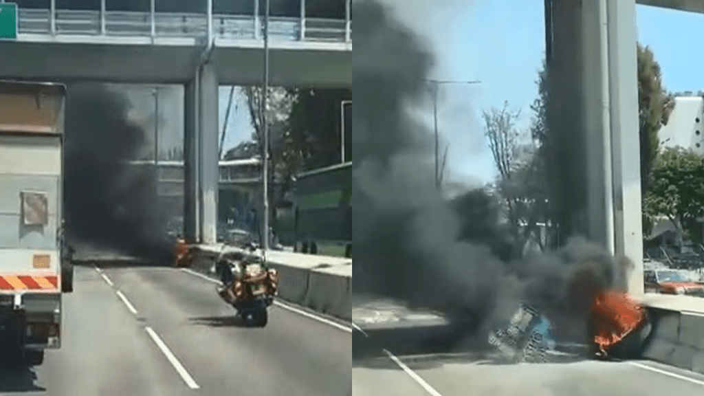 有片|大埔公路貨車輪胎飛脫 起火冒濃煙