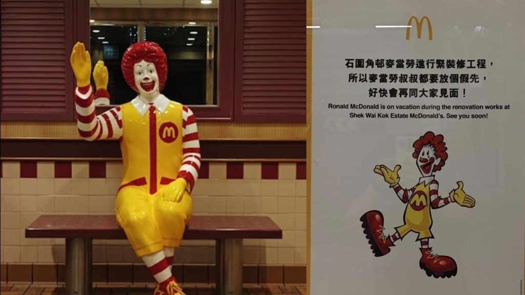 全港唯一保留麥當勞叔叔石圍角分店 貼通告稱內部裝修暫時停業