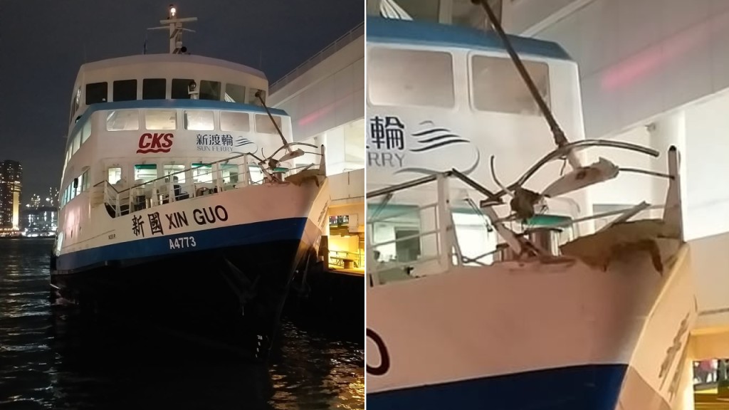 今日(27日)傍晚6時許,一艘由長洲開往中環的新渡輪「新國Xin Guo」靠泊中環5號碼頭期間,船身不慎撞到4號碼頭位置,船上當時有逾550名乘客及8名職員,消息指事件中無人受傷,警方及消防在場戒備並進行調查。根據網上圖片所見,渡輪的船頭有輕微損毀,欄杆歪曲,現正停泊5號碼頭,待相關人員到場調查及跟進。《星島頭條》正向新渡輪查詢情況。