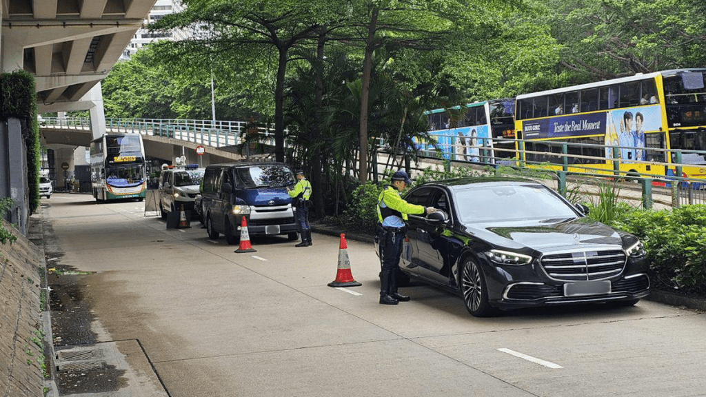警方在灣仔區堅拿道東、摩利臣山道及體育路的車輛交匯處採取執法行動。警方提供