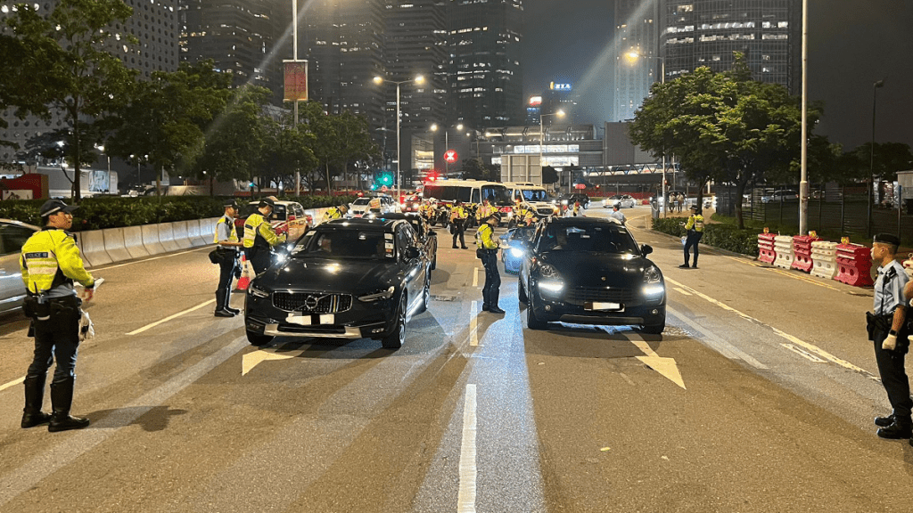 警方港島總區交通部執行及管制組聯同港島總區警察機動部隊人員昨日(21日)晚上及今日(22日)凌晨在港島區展開打擊酒駕、藥駕及與車輛使用有關的罪案的反罪惡行動。人員在多區設置路障,截查可疑車輛,並巡查區內罪惡黑點。