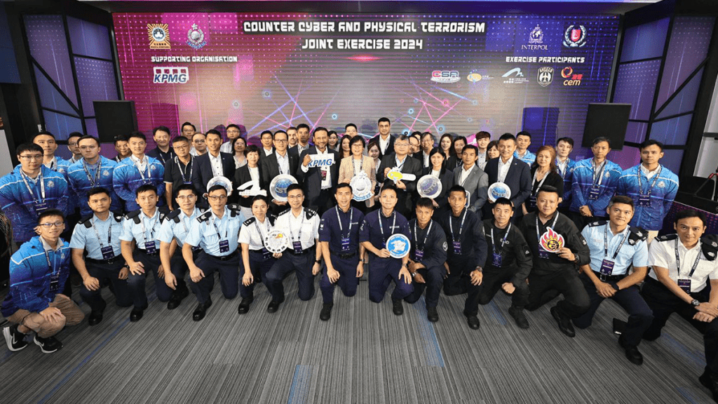 香港警務處網絡安全及科技罪案調查科(網罪科)與國際刑警組織、新加坡警察部隊和網絡安全局以及澳門司法警察局於今日(14日)舉辦「網絡及實體反恐聯合演練 2024」的桌上演練,代號為「戰風」。