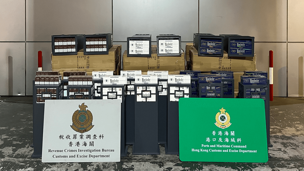 海關透過風險評估和情報分析,於9月25日在屯門內河船碼頭海關大樓驗貨場揀選及查驗一個從南沙抵港、報稱載有瓷磚的40呎海運貨櫃。經檢查後,海關人員在貨櫃內檢獲約240萬支懷疑私煙,一名68歲懷疑涉案男子被捕。
