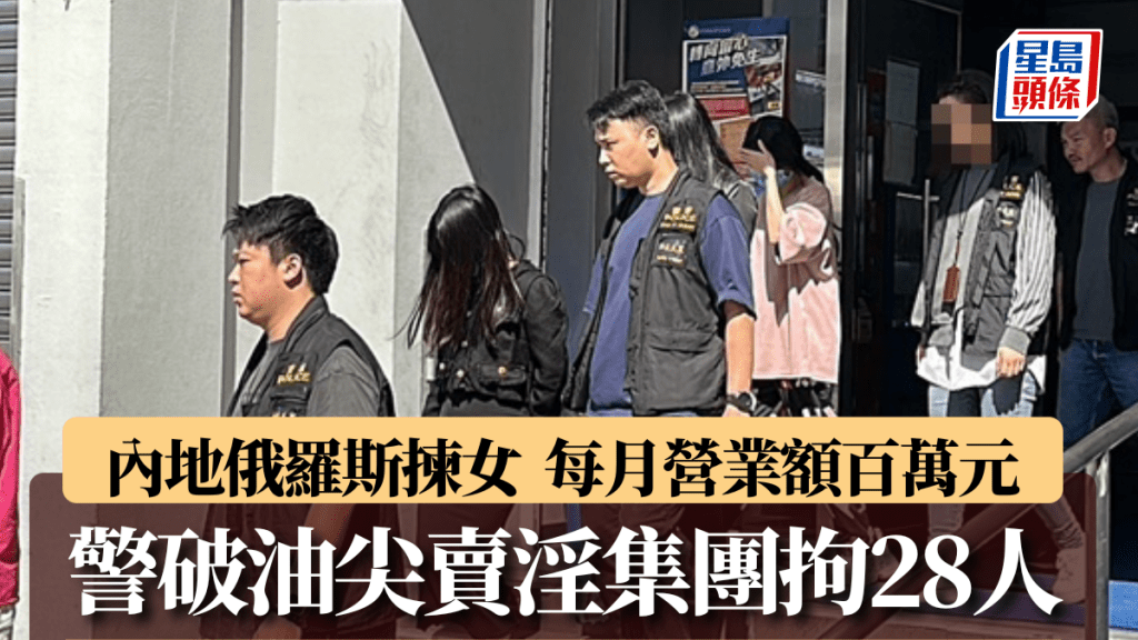 被捕5男23女,涉嫌「控制賣淫」、「依靠他人賣淫收入維生」、「非法入境」及「逾期逗留」,她們分別持香港身份證、雙程證及外國護照,目前仍被扣查。據了解,有關宣傳賣淫服務的社交平台的帳戶已停用,警方將凍結有關犯罪得益。