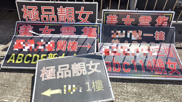 根據香港法例200章《刑事罪行條例》第147A條,任何人(包括業主、租客、或其代理人、或單位佔用人、或招牌製造者)公開地展示,或導致或准許公開地展示任何宣傳或可合理地被理解為宣傳由娼妓或由組織或安排賣淫的人所提供的服務的標誌,即屬犯罪,一經定罪,可處監禁12個月。警方亦會繼續打擊有關罪行,以維持社會治安。