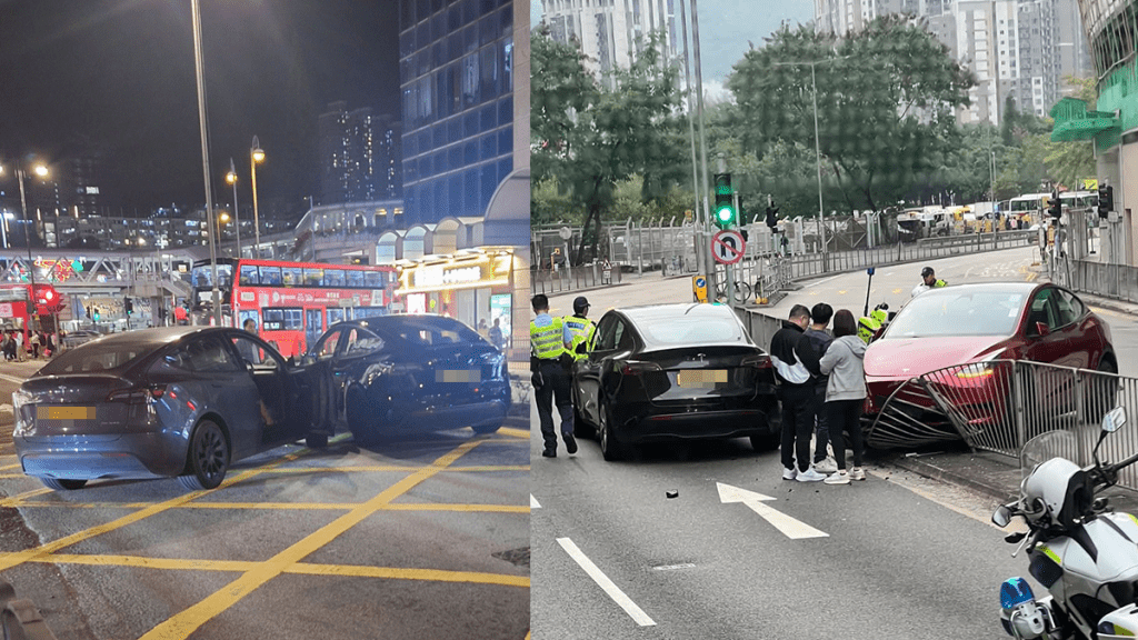 荃灣4小時內發生至少兩宗車禍,涉及4輛Tesla。今日(8日)下午3時許,一輛紅色Tesla沿永德街轉入德士古道,至京華工業貨倉大廈對開時撞向路中鐵欄。鐵欄其後再擊中對面線另一輛黑色Tesla,事件中無人受傷。至晚上7時許,兩輛Tesla在沙咀道與禾笛街交界發生相撞,令現場交通嚴重受阻,事件亦無人受傷,警方正調查兩宗車禍原因。