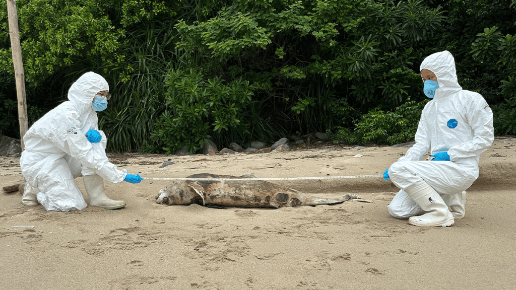 大嶼山上長沙泳灘發現一條江豚屍體。香港海洋公園保育基金提供