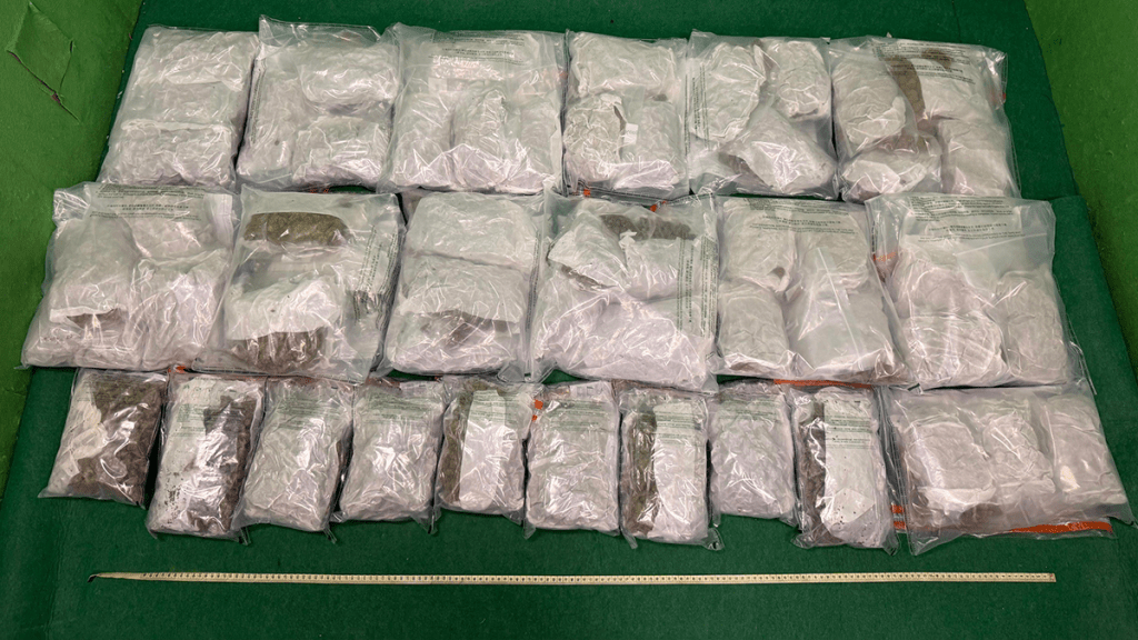 香港海關於10月12日在香港國際機場偵破一宗涉及3名入境旅客的販毒案件,共檢獲約14公斤、估計市值約300萬元的懷疑大麻花。