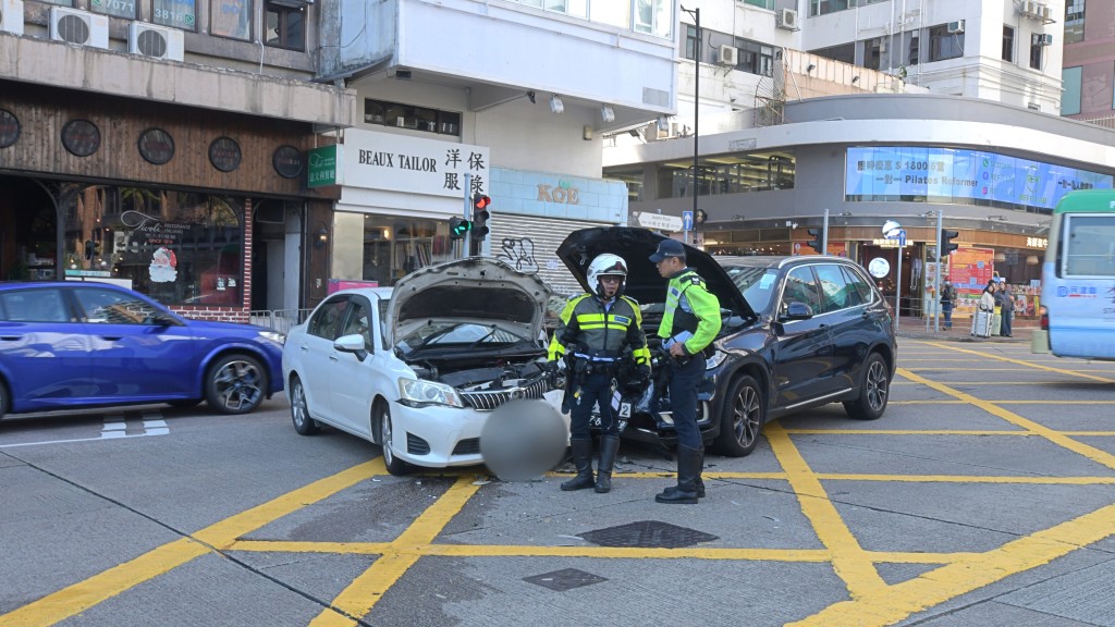 今日(8日)早上10時18分,兩輛私家車在柯士甸道和覺士道交界相撞。警方及消防接報指有人被困車上,於是到場救援,證實無人被困。惟意外中兩名女司機同告受傷清醒,其後由救護車送往伊利沙伯醫院治理。