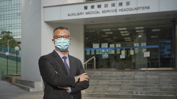 翻查資料,黃英強1997年加入消防處任職救護主任,2019年6月15日起出任醫療輔助隊總參事。