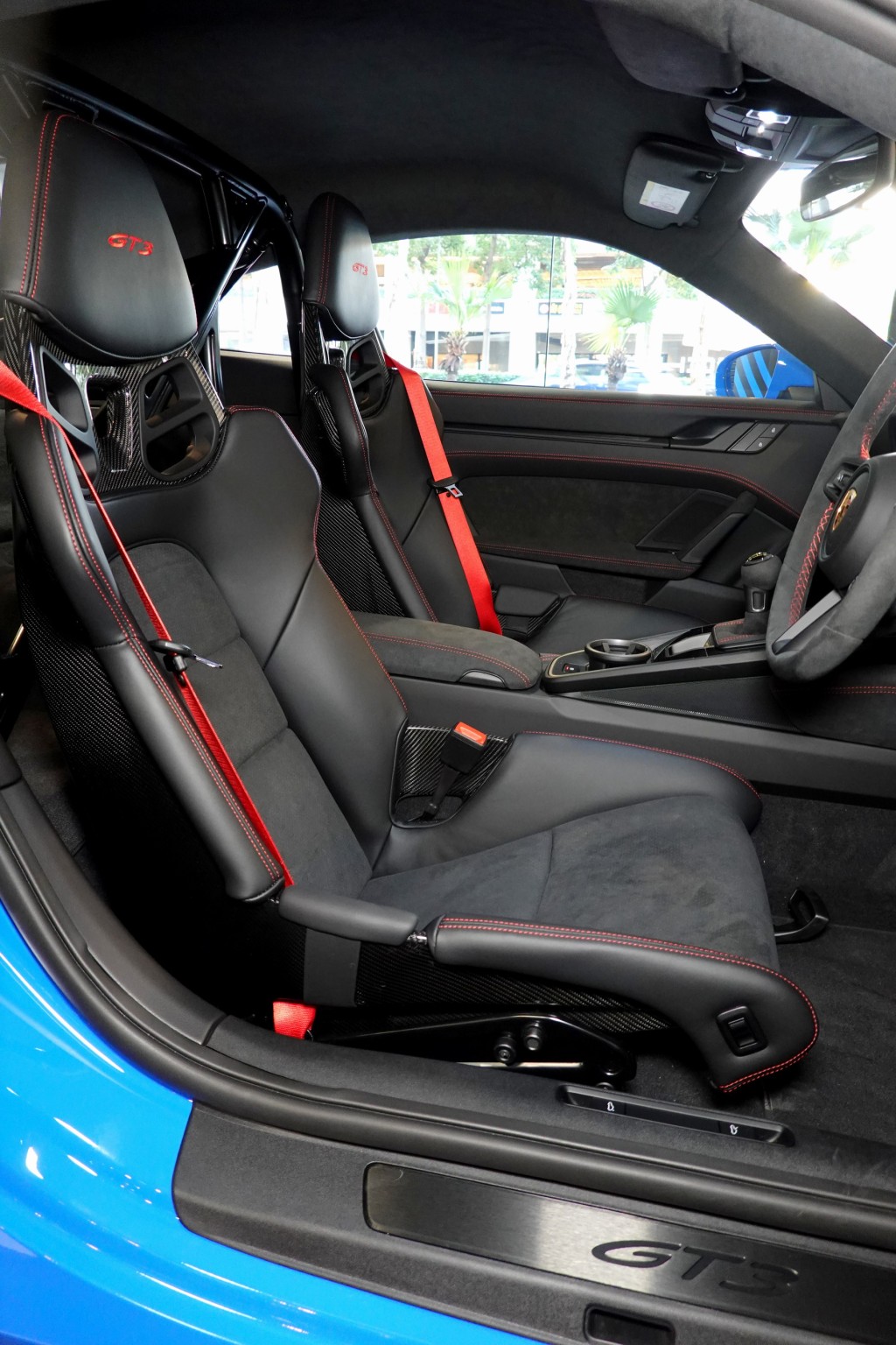 車廂陳設保留992車系簡約先進神髓,惟改配兩張賽車化桶椅及加上翻車保護架。電子表板增設Track Screen功能,只要輕觸按鈕便能移除不必要顯示訊息,兩側還增設賽道化的轉檔指示及燈號,方便落場時可以更專注駕駛。