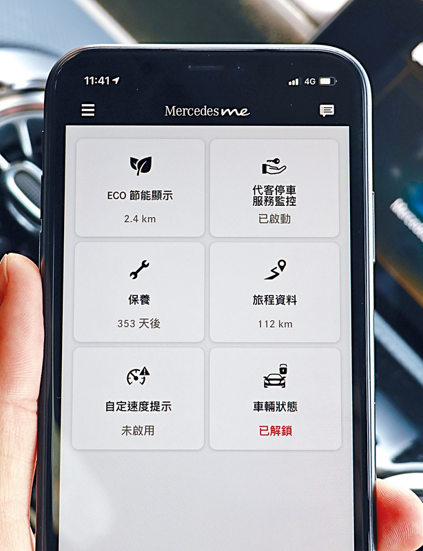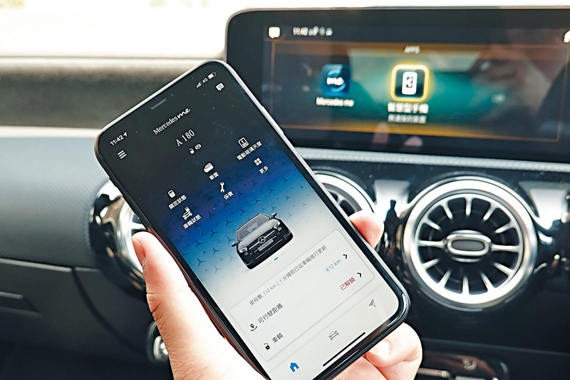 據知所有2021年平治新車跟這部A180一樣,加入Me Connect智能互聯功能,每輛車內置SIM卡,用戶只須利用Mercedes Me手機應用程式,便可遙距開關門鎖、天窗,還可以隨時檢視各種資料如耗油量、輪胎氣壓、何時返廠檢查,甚至可預約服務等。遇有緊急情況,更可以按動車內Me Connect鍵,聯絡二十四小時緊急服務中心。車主還可為座駕設定範圍,每當車子駛離特定範圍,手機會有即時訊息提示,方便追蹤代客泊車。