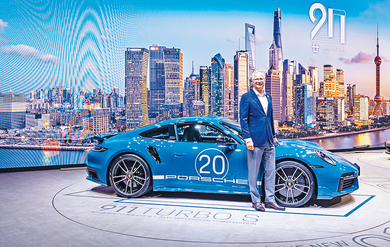 保時捷為慶祝品牌登陸中國市場二十周年,在本周初開幕的上海車展,推出911 Turbo S中國二十周年紀念版(見圖),由廠方Exclusive Manufaktur部門特別打造,配有五種專用車身顏色及拉花,包括車側「20」號碼及Porsche銀色字體,B柱兩旁還貼有20 Years Porsche China Edition徽章。