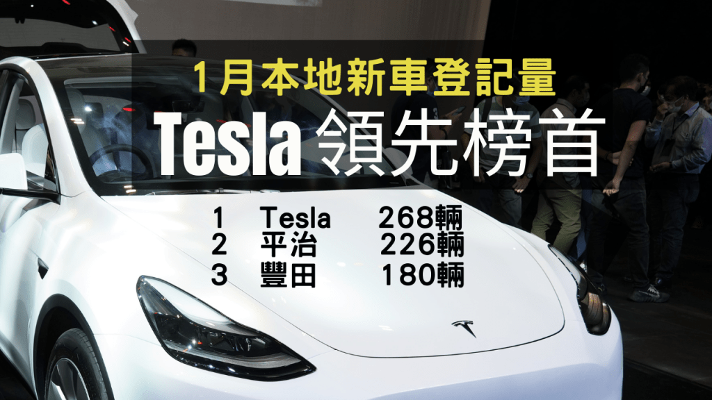 Tesla今年1月有268輛新車在港登記出牌,排列十大成交榜首位。