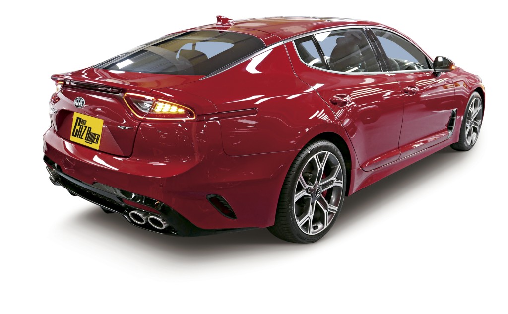 KIA Stinger GT於2018年推出,至今在港仍是現行款式,長達4,830mm的四門Coupe設計,配370匹3.3公升V6 Twin-Turbo引擎,達到Audi S5 Sportback及BMW 440i Gran Coupe的級數。而且標準設備比對手更齊全,毋須Option追加已有齊全LED頭尾燈、四出尾喉、Brembo 4-pot卡鉗、19吋軨、天窗、冷暖前座、電暖後座、8吋觸控屏幕、後波鏡頭、CarPlay、Harman Kardon音響、投射儀表、無線充電板、感應式電尾門等數之不盡的高級設備,但約47萬新車價比對手平近40萬,新車已是超高性價比。