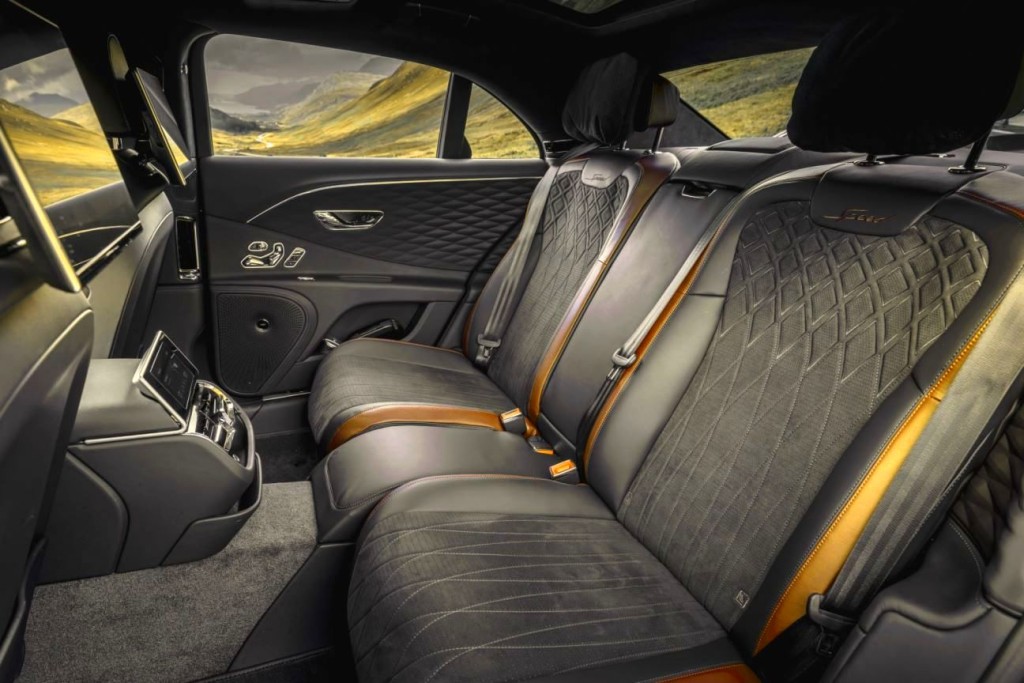 車廂陳設兼備豪邁及跑車氣息,乘客可碰觸的部分均以全新Dinamica再生聚酯纖維打造,配襯鋼琴黑木紋飾板,皮革顏色選擇由5種增加至15種,並可選配直紋胡桃木、深色啞光胡桃木或深色小提琴背桉木等飾板。前後兩排座椅均配備獨立電控調校及記憶,內附冷暖透氣功能,還有全數碼儀表板、中控台12.3吋觸控屏幕、金屬腳踏板連門枕飾板外,首飾箱旁更鑲有Speed字樣識別等。