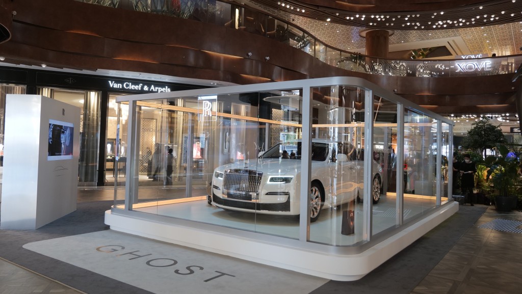 勞斯萊斯香港代理今天(9月23日)起至10月2日(二),在尖沙咀K11 Musea地下中庭Opera Theatre舉行名為The Spirit of Rolls-Royce期間限定展覽會,讓公眾體驗品牌的後奢華美學新概念,現場設有一個龐大玻璃室,盛展車價高達780萬元的新一代Ghost EWB (Extended Wheelbase)長陣版房車。