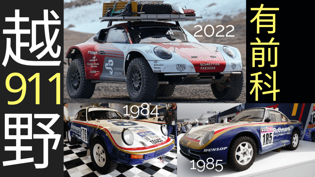 越野版911其實早有前科,首先是1984年953型(911 Carrera 3.2 4x4),當年勝出Paris-Dakar越野耐力賽及19個分站冠軍一炮而紅。1985年保時捷改用959(沿用953機械格局)參戰Paris-Dakar未能成功,直至1986年才成功重奪冠軍及亞軍寶座。