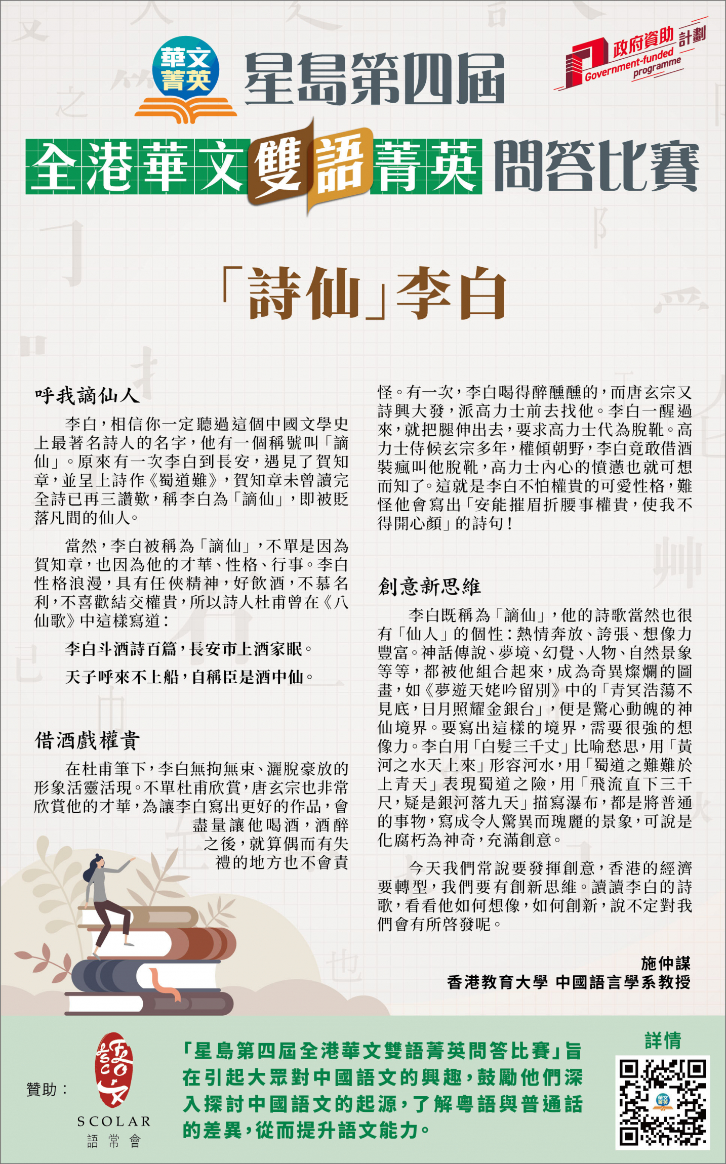 「詩仙」李白 — 施仲謀教授(香港教育大學 中國語言學系教授)