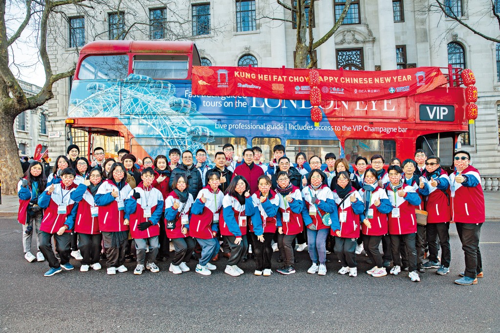 ▲參訪團參與倫敦華埠商會的新春巴士巡遊。