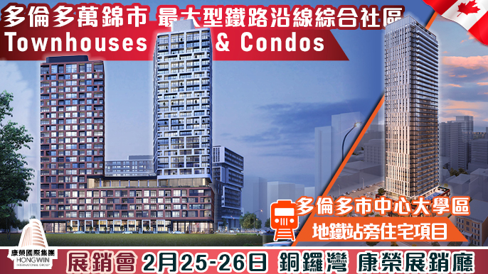 多倫多向來是香港人的移民聖地,全因這裡的生活跟香港沒太大分別。以最多港人聚居、有「小香港」之稱的萬錦市Markham為例,市內有Times Square、萬錦廣場、太古廣場等多個大型購物中心,飲茶、港式茶餐廳、港式超市也有很多選擇。加上可以用講東話溝通,同聲同氣又易於適應。今次展銷的樓盤位於萬錦市一個最新最大型的社區 Townhouses & Condos,而首期只需港幣$20萬起,無論自住、投資或收租都值得考慮。