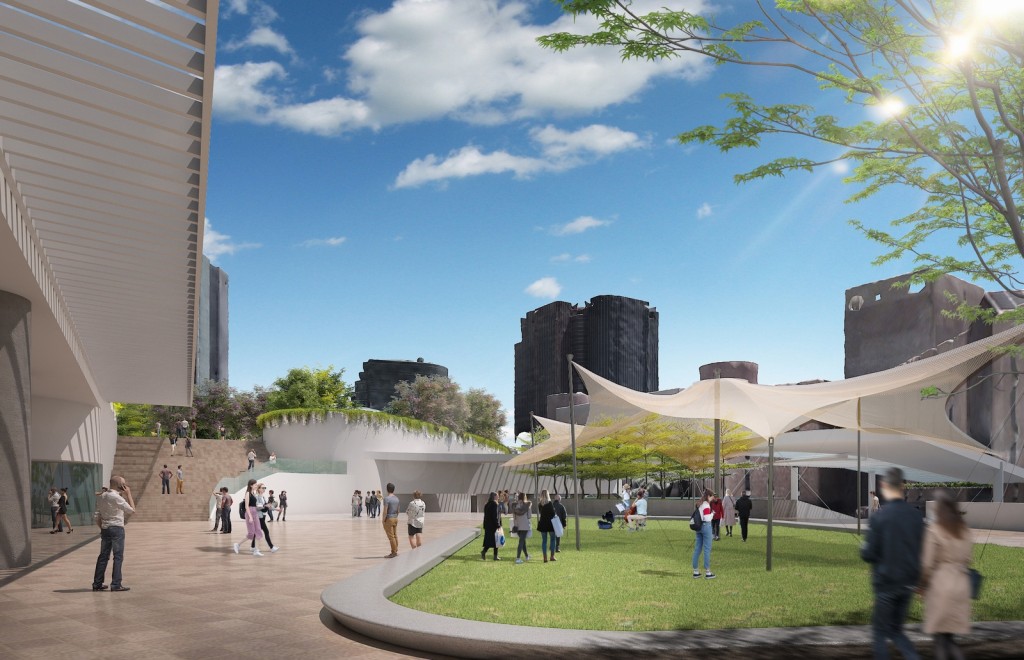 綠化平台分三層,最頂的平台層包括園景公園、餐飲設施等;中層設有行人網絡連結四周;地面層將繼續容納紅隧車流,並將巴士站改造成無障礙巴士候車室。