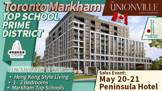 不少香港人都喜歡多倫多Markham萬錦市的Unionville於人村。這個著名地段是萬錦市發展歷史最悠久,也是最核心的地區,地價更是萬錦市中最頂尖的。除了 傳統街道及歷史地標外,市内有許多港人商場,稱得上是加拿大東岸的「小香港」;加上區內名校林立,吸引不少家長選擇在這裡置業。本週末(5月20至21日 ) 於尖沙嘴半島酒店展銷的全新豪宅項目 The Unionville Luxury Condominium 正是位於名校網核心地段, 同場更會推介 Downtown Markham 2023 年入伙項目,有意置業人士不妨到場了解。