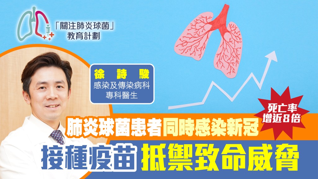 儘管新冠疾病的威脅較以往低,但仍不容輕視,尤其是如果同時感染其他疾病,有機會帶來嚴重後果。感染及傳染病科專科醫生徐詩駿醫生引述英國研究指,倘若新冠患者同時感染肺炎球菌而引致侵入性肺炎球菌病,其死亡率較只患上侵入性肺炎球菌病的患者高7.8倍[註一]。