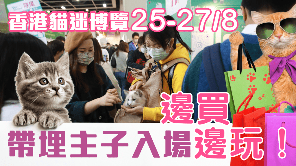 貓奴注意!以貓咪為主題的「香港貓迷博覽會 2023」於本周末(8月25日至27日) 一連三日在香港會議展覽中心舉行,屆時會雲集多個國際寵物貓用品品牌,讓一眾奴才可以幫主子搜羅各式貓咪生活用品、文創產品,還有潮流玩具、藝術品及一連串活動,仲可以帶埋貓咪入場一齊玩!