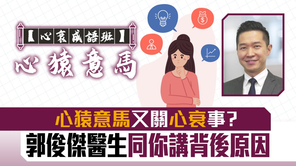 「心猿意馬」指心思如猿猴不定地跳躍、快馬四處地奔馳而難以控制,既想東又想西。就好像治療心衰有很多方法,但又拿不定主意,不知用甚麼治療方案好,但只要問清楚醫生甚麼是最適合你的治療方案,就不用再心大心細。
