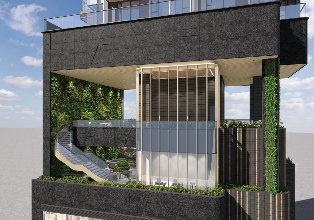 項目以綠色生活為設計理念,銳意打造一個現代舒適、品味時尚的居住空間。整個建築風格新派亮麗,特以香檳金色的垂直鋁片與黑麻石紋理的相互碰撞,為時尚型格定義新指標。