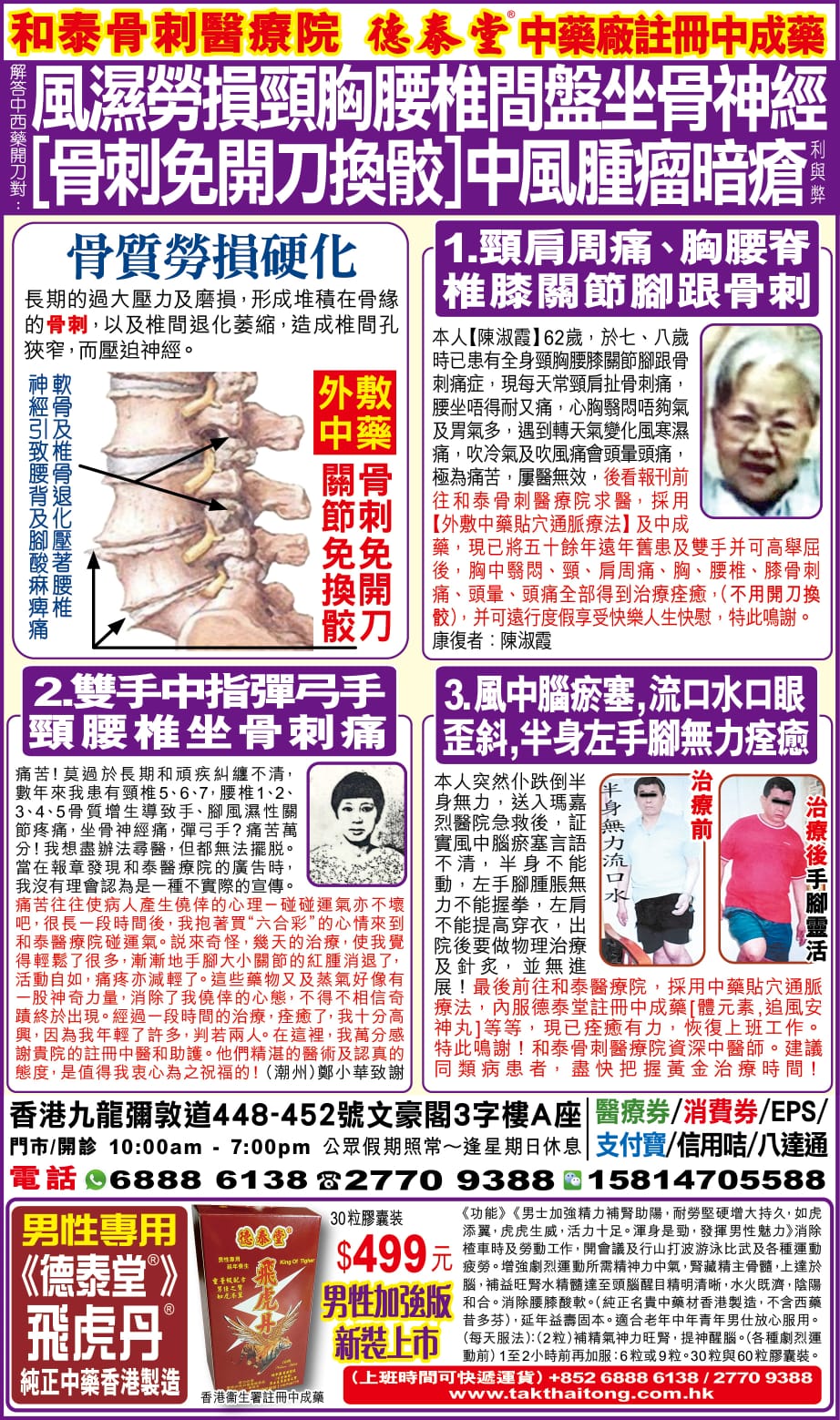 【香港】和泰骨刺醫療院網站查詢: https://www.takthaitong.com.hk/