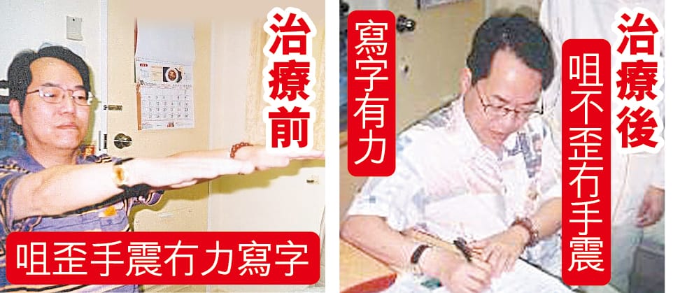 直至2004年首次家人摻扶到訪德興街2號地舖/和泰骨刺醫療院/德泰堂,接受專家教授採用:專科中醫中藥由醫師悉心治療,內服外敷貼穴中藥痊癒後!經已恢復元氣四肢灵活回復、有力,標本齊治、家人甚感快慰,已上班12小時。特此鳴謝!