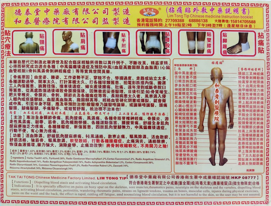 【歷代祖傳中藥無痛外敷貼穴通脉療法。】標本齊治。治痛快安全有效。【醫經有云:血脉通則不痛,血脉不通則痛。上工治未病,下工治已病。預防勝於治療。】