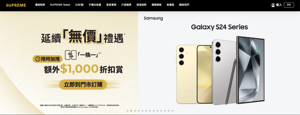 即日起,SUPREME客戶可於門市尊享$0機價*及總值超過$13,000*的禮遇,包括容量升級優惠 (價值高達 $3,000)及「亞洲萬里通」高達5,000里數等。