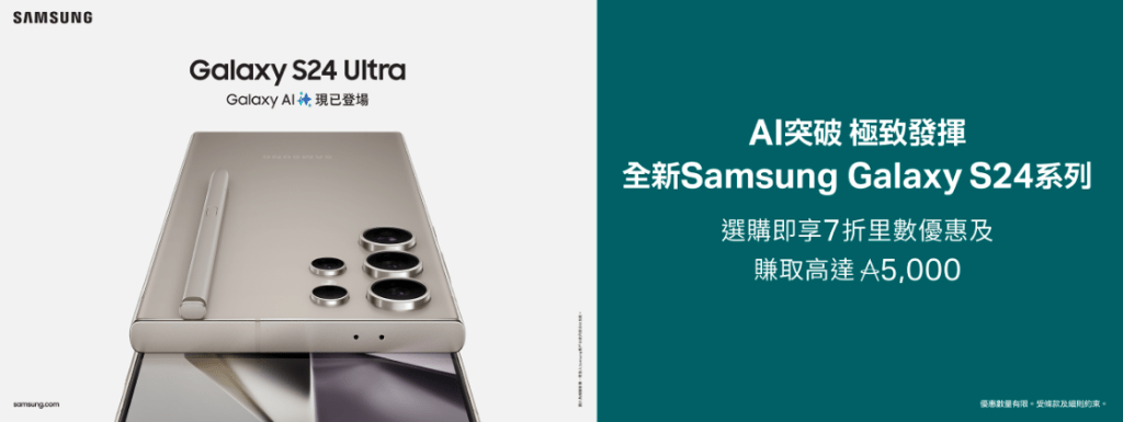 客戶以任何型號手機換全新Samsung Galaxy S24 系列,即享額外 $1,000 折扣^,讓你送舊迎新過新年。