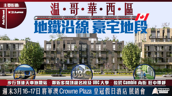溫哥華西區:傳統名校富人區 地鐵沿線項目